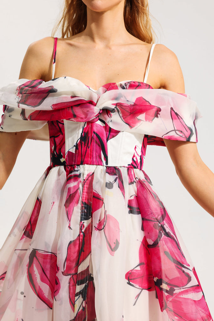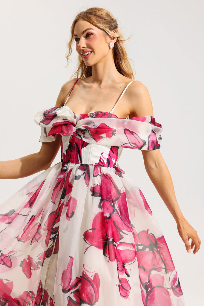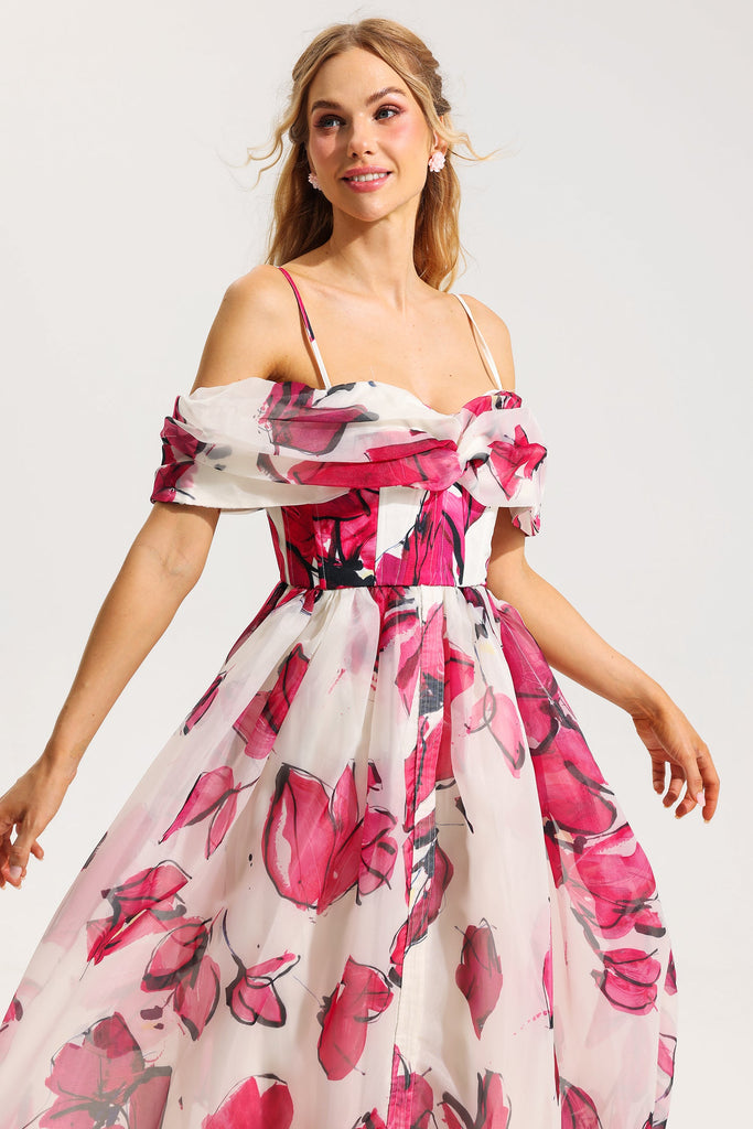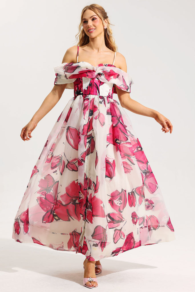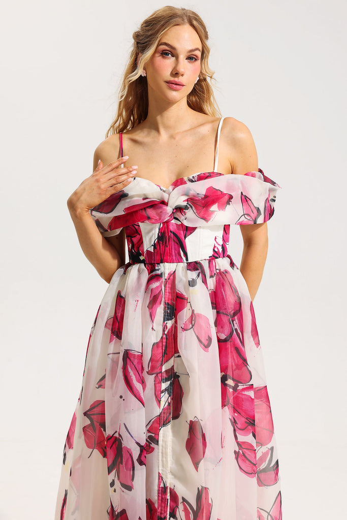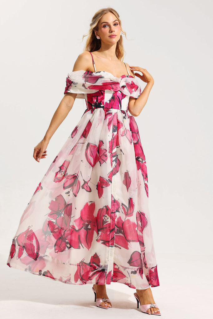 This Floral Off-Shoulder Pleated Midi Dress is a must-have for any fashionista. With its elegant off-shoulder design and delicate floral pattern, it exudes effortless style. The pleated midi length adds a touch of sophistication, making it perfect for any occasion. Bring out your feminine charm with this stunning dress.