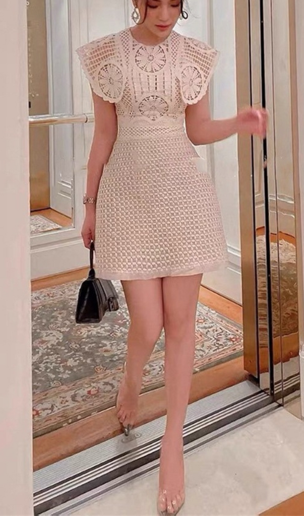 The delicate lace detailing and midi length create a feminine and elegant look. Made with high-quality materials, it offers both comfort and durability. Perfect for any occasion, this dress is a must-have for any fashion-forward individual.