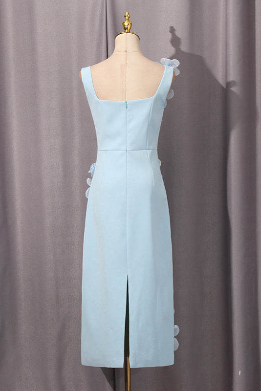 The Sabrina 3D Flower Midi Dress in Blue combines delicate craftsmanship with elegant design. Featuring intricate three-dimensional floral details, this dress adds texture and sophistication to your ensemble. Its midi length offers a graceful silhouette suitable for various occasions, while the calming blue hue enhances a refined, timeless appeal. Perfect for those seeking a statement piece that balances artistry with wearability.